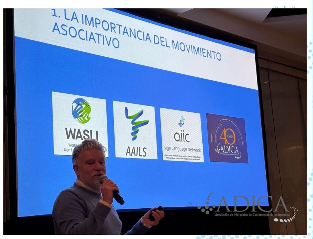 En el marco de la Primera Conferencia Latinoamericana y Caribeña de Traductores, Intérpretes y Guías Intérpretes de Lengua de Señas, organizada por AAILS durante la WASLI LAC en Buenos Aires, nuestro socio Martín Barrère presentó una ponencia centrada en el movimiento asociativo y la normalización profesional.