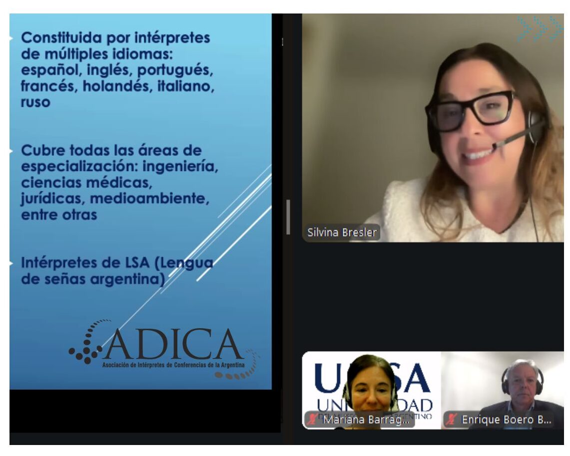 En septiembre, brindamos una charla virtual para estudiantes de la Facultad de Lenguas Modernas de la Universidad del Museo Social Argentino (UMSA) interesados en iniciarse en la interpretación de conferencias.